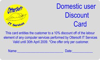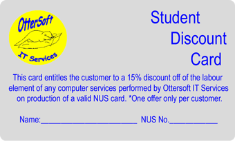 PromotionsStudents: 15% off (labour element only) on production of NUS card. One offer per customer. Domestic users: 10% off (labour element only) until 30th April 2009. One offer per household. |